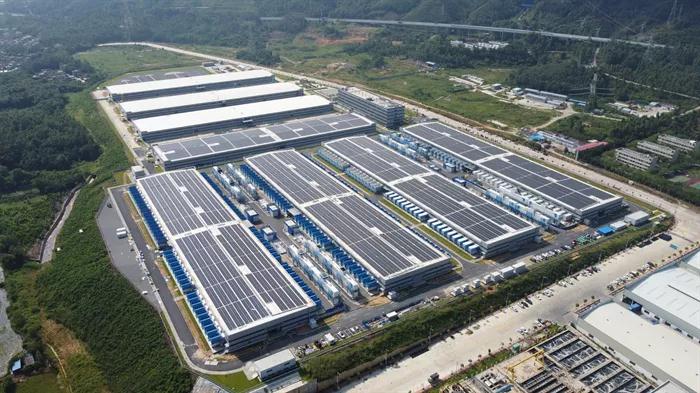 在制造业之外,互联网行业与光伏发电结合共同减碳也具有天然优势。在广东清远,腾讯清远数据中心同样采用了隆基新能源提供的分布式光伏解决方案。单栋屋面年均发电量150万度以上,园区内八栋厂房年发电量1200万度以上,设计使用年限内总发电量至少3亿度。