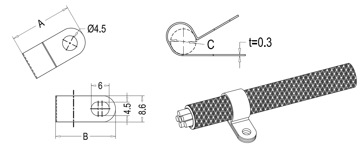 用途:用于夹持隔离电线再用螺丝固定接地效果佳,防干扰