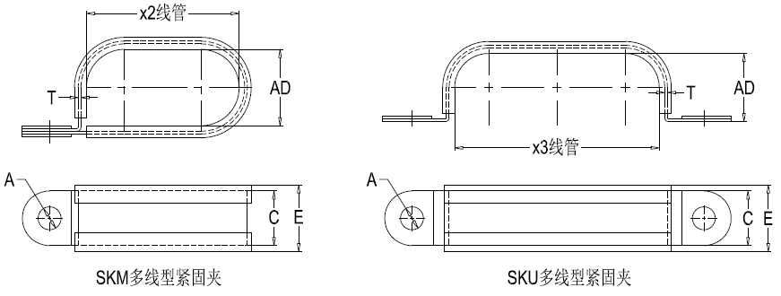 型 号 Item No. | 适用线径x线管数 | 螺丝孔 | 橡胶外宽 | 金属宽度 | 金属厚度 | |